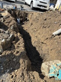 勾配を確認しながら配管も調整しました。