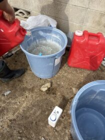 粉状のホウ酸をお湯で溶かし、液状にしていきます。