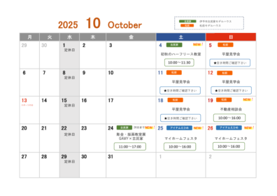 10月はハーフリース教室や不動産相談会、