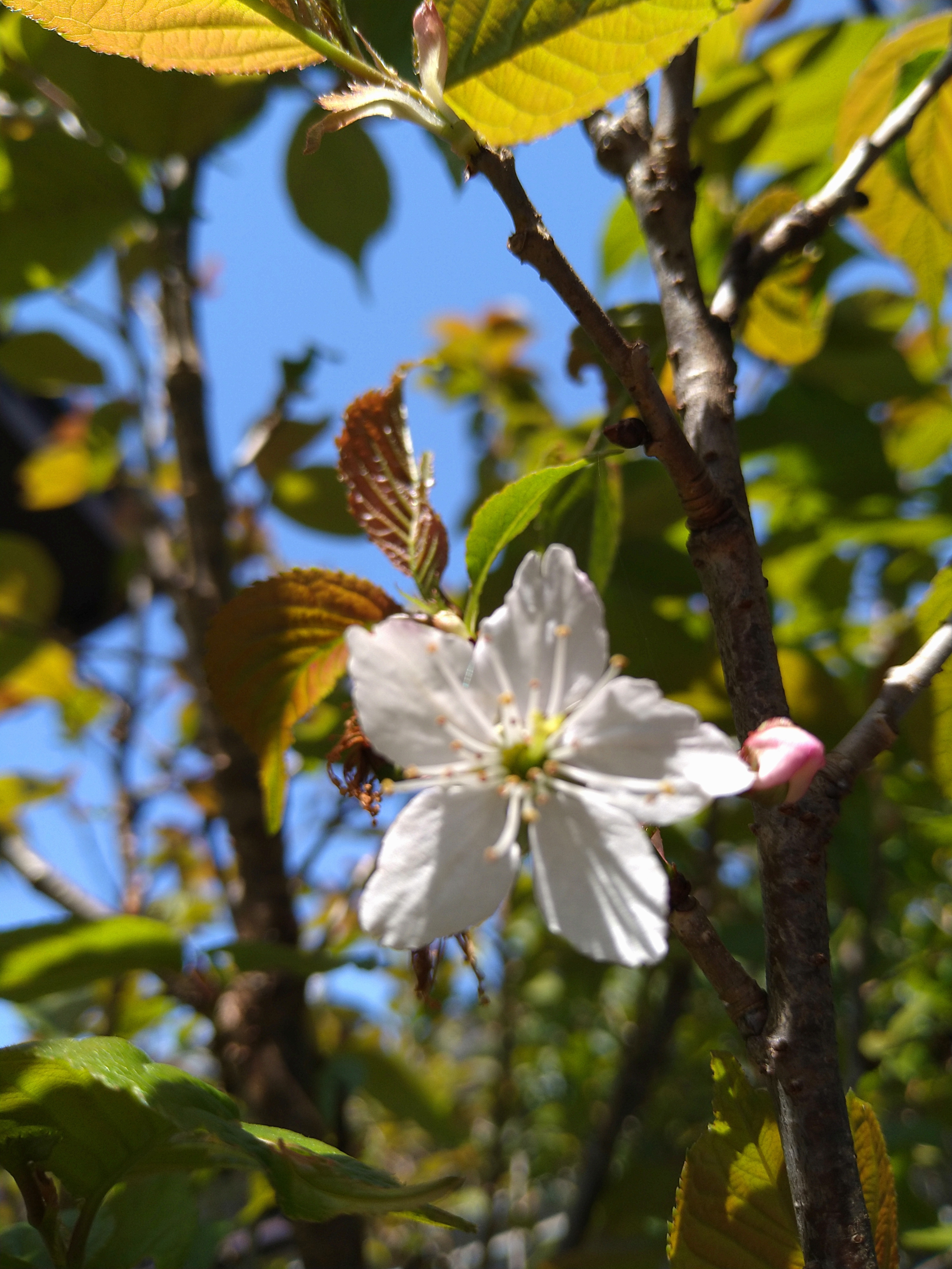 桜は桜でも、庭に咲いた さくらんぼの花。 さくらんぼの木は「桜桃」(おうとう)と呼ばれるそうです。小さな実は「桜……more