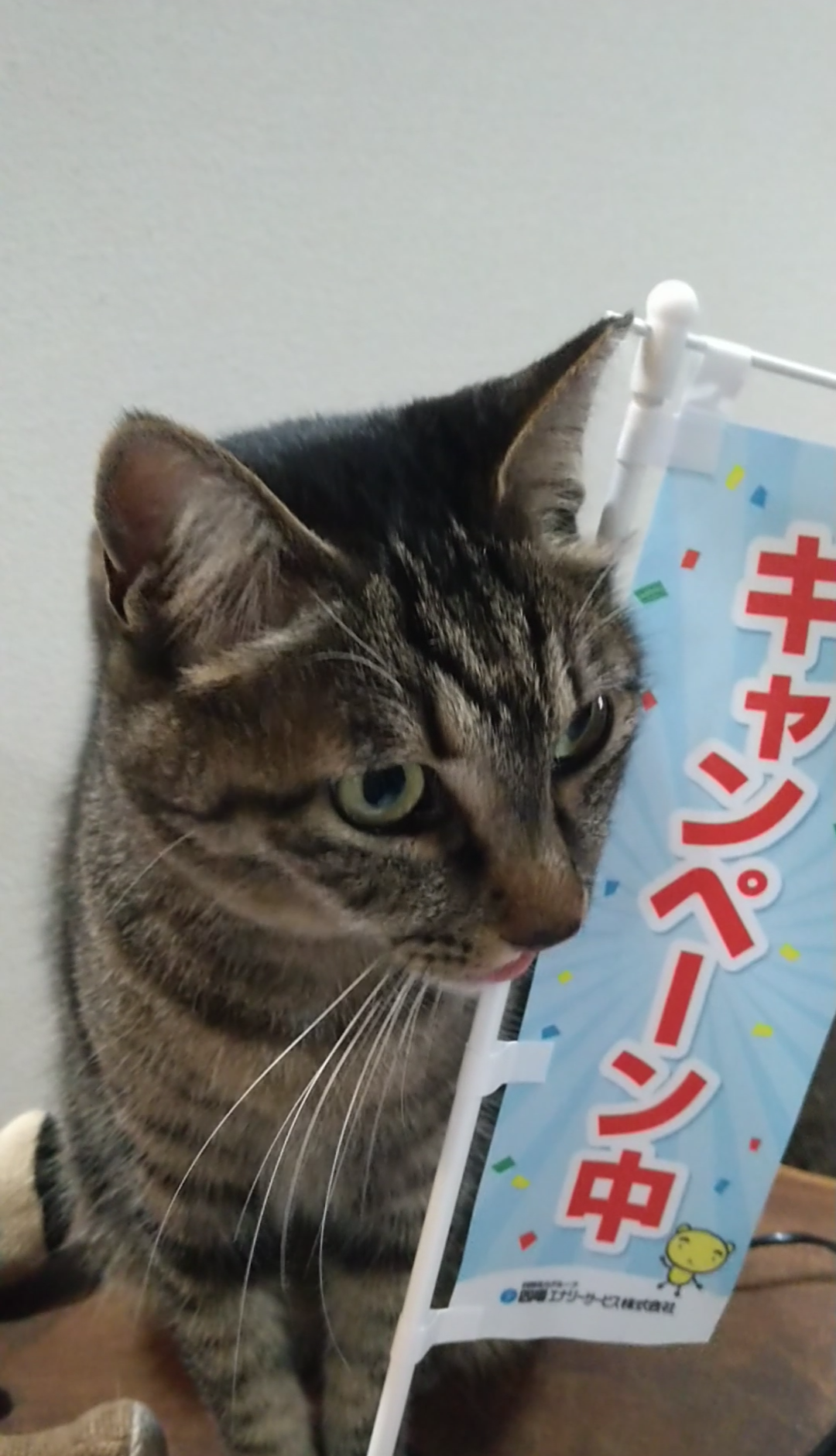 得意先からいただいた 販促用の、のぼり旗。 「応援しますにゃ」 「ねこの手貸します♪」 「キャンペーン中!!」 ・・と言っ……more