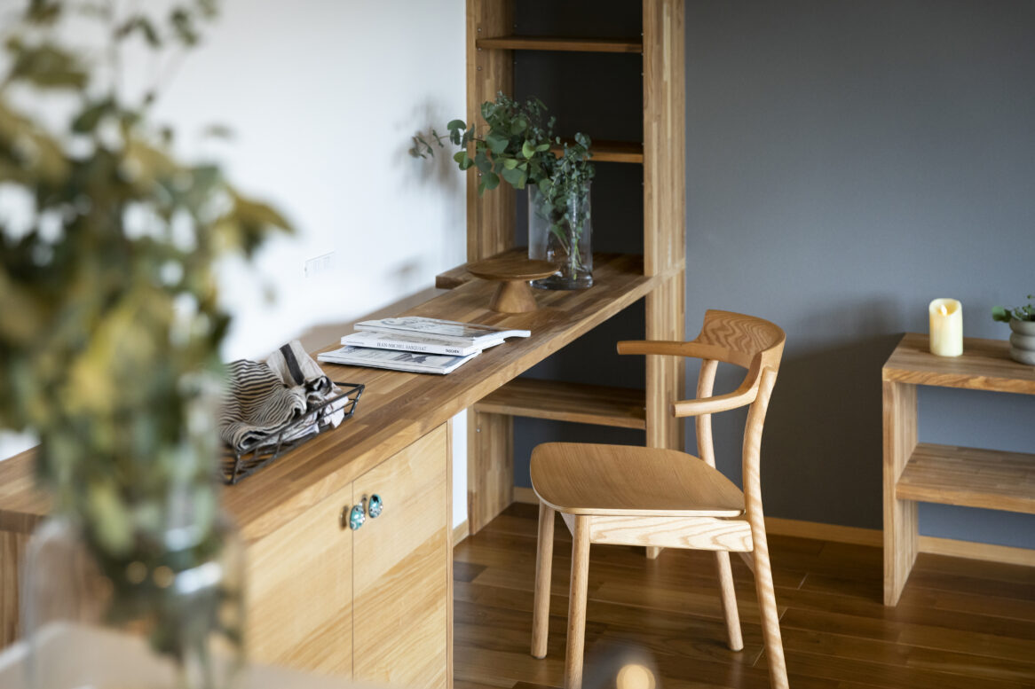 キッチンは二列型を採用し、動線をコンパクトにすることで、料理のしやすさと効率性を両立。