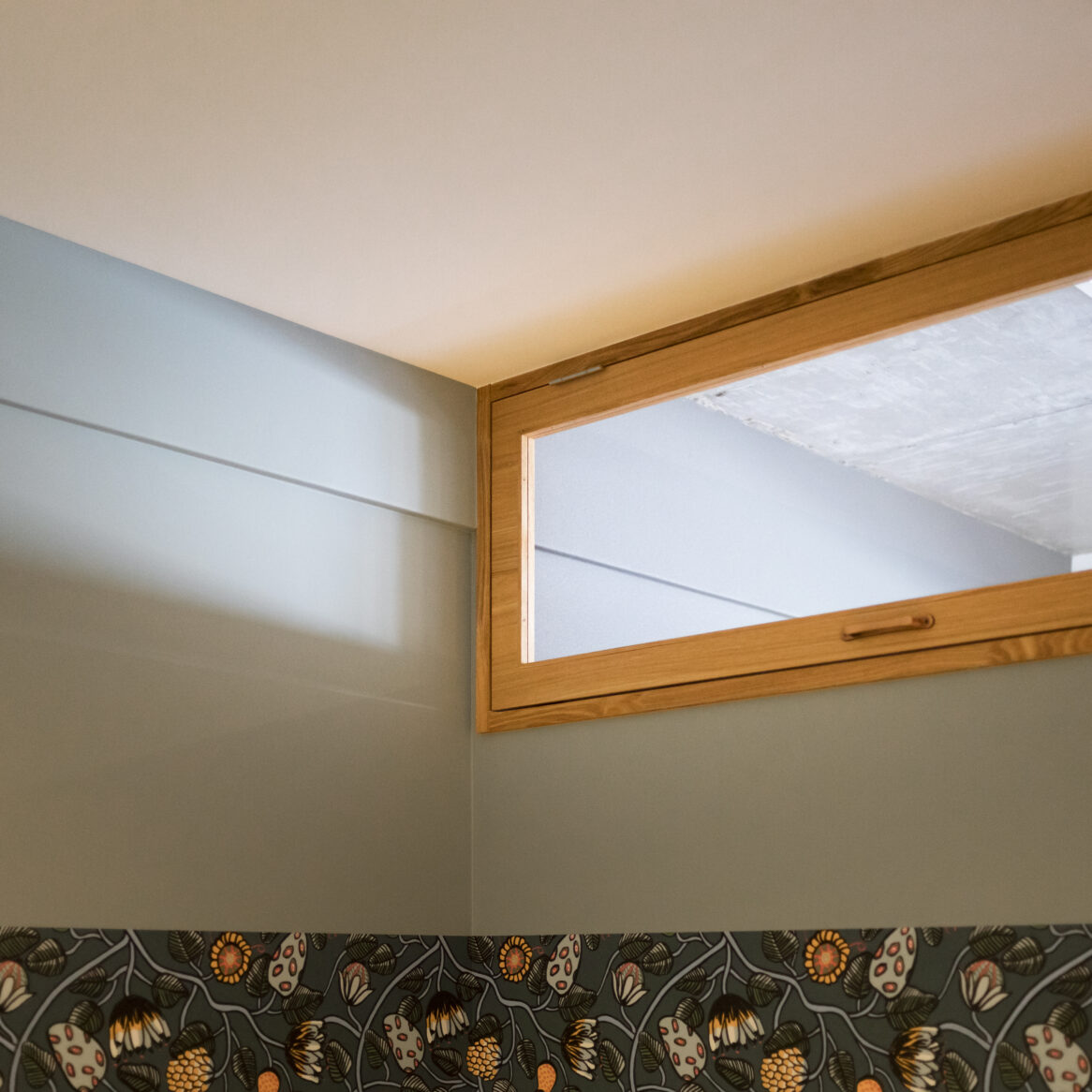 寝室の一角には、マリメッコの輸入クロスを取り入れ、遊び心もプラスしました。