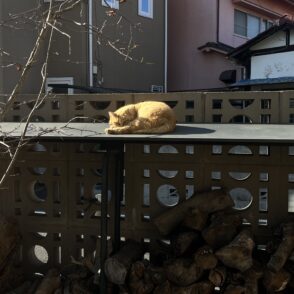 体を伸ばして窓の外を覗いて見ると、 薪置きの小さな屋根の上に1匹のネコが… 目が合った…more