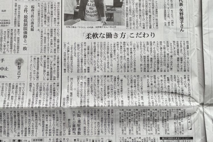 愛媛の女性工務店 ヤノ・ヨーコですっ! 5月15日 朝日新聞の朝刊記事に クラスの働き方が取…more