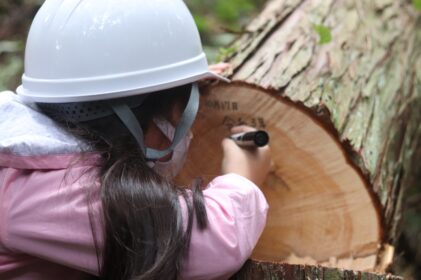 山まで一緒に足を運び、新居を見守る大黒柱を選びます♪